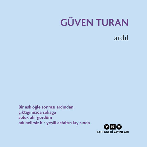Günümüz şiirinin ustalarından Güven Turan’ın altı yıl aradan sonra yeni şiir kitabı “Ardıl” Yapı Kredi Yayınları’ndan çıktı. “Mukaddime” adlı uzun bir şiirle başlayan kitap, Güven Turan şiirinin bütün özelliklerini taşıyor.