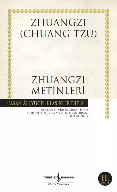 Zhuangzi (MÖ 369-MÖ 286): Daoizmin en önemli filozoflarından Zhuangzi’nın hayatı ile ilgili çok az bilgi bulunmaktadır. Si Maqian’in Tarihçinin Kayıtları adlı eserine göre, kısa bir süre için bahçe işlerinde alt düzeyde bir memur olarak görev yapmış ve Chu Beyliği’ni yönetmesi için gelen teklifi reddetmiştir. Ömrü boyunca sade ve yoksul bir hayat sürdüğü bilinmektedir. Zhuangzi metinlerinin, Daoizmi Dao De Jing’den (Tao Te Ching) çok daha kapsamlı şekilde açıkladığı düşünülür. Zhuangzi’nın öğretileri Çin Buddhizmi üzerinde de önemli etkiler bırakmıştır. Daoizmin temel eserlerinden Zhuangzi Metinleri ilk defa özgün dili Çinceden çevirisiyle okurla buluşuyor.