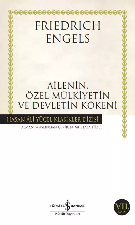 Friedrich Engels (1820-1895): Alman sosyalist kuramcı. Lutherci sanayici bir babanın oğludur. Berlin’de eğitim gördü, orada Genç Hegelciler grubuna katıldı. Brüksel Komünist Federasyonu Merkez Komitesi’nin sekterliğini yaptı, ihtilâl için Almanya’ya döndü ve orada süreli yayınlar çıkardı, Barmen’deki işçi ayaklanmasına ve Pfalz devrimci ordusunun harekâtına katıldı. Sonrasında İngiltere’ye yerleşti. Eserlerinde diyalektik materyalist düşünceyi tabiat, felsefe, bilim vb. konulara tatbik etti. Paris’te tanıştığı Marx ile birlikte Kutsal Aile, Alman İdeolojisi ve Komünist Manifesto gibi büyük eserler kaleme aldı. Marx’ın eserlerine büyük katkı sağladı, başta Kapital (II. ve III. Cilt) olmak üzere bazı eserlerini de ölümünden sonra Engels yayımladı. İngiltere’de Emekçi Sınıfların Durumu kitabıyla işçi sosyolojisini kurdu. Hayatını Marx’ın fikirlerinin başarıya ulaşmasına adadı. İlk kez 1884 yılında basılan Ailenin, Özel Mülkiyetin ve Devletin Kökeni’nde Engels, öncü antropolog Lewis H. Morgan’ın yabanıllık-barbarlık-uygarlık ayrımını kullanarak ve Marx’ın elyazmalarından hareketle, insanlığın kabileden çekirdek aileye, soy düzeninden devlete uzanan gelişimini materyalist bir tarih kavrayışıyla ve herkese hitap eden anlaşılır bir üslupla inceler.