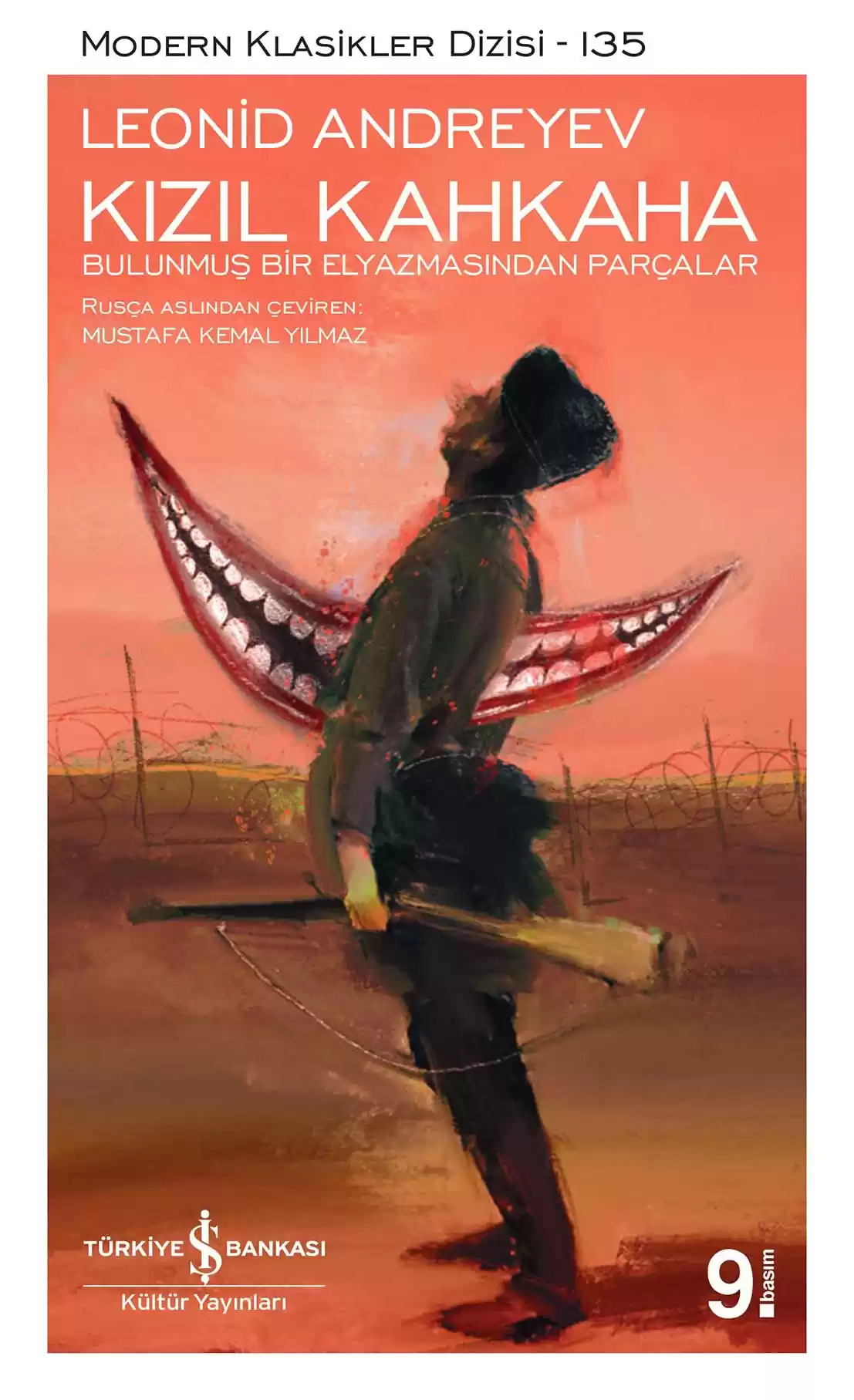 Andreyev’in Rusya’nın Rus-Japon Savaşı’ndan (1904) ağır bir yenilgiyle çıkmasının ardından kaleme aldığı Kızıl Kahkaha, savaşın akıl almaz mezalimi üzerine yazılmış en sarsıcı metinlerden biridir. Bir Rus subayının Mançurya’daki korkunç taarruz sırasında tuttuğu bölük pörçük günlük, onun ölümünden sonra savaşa katılmayan kardeşi tarafından tamamlanır. Genç subay kendi ordusunun mermilerine hedef olarak bacaklarını yitirmiştir. “Kızıl Kahkaha” onun için yaralı, sakatlanmış, paramparça bedenlerin; “kanla kızıllaşan toprakların” simgesidir: “Dünya çıldırdığında böyle gülmeye başlar.” Savaş alanındaki vahşet, hem sonu gelmeyen yürüyüşün tükettiği askerleri hem de bütün bu acılar karşısında büyük bir acze düşen doktorları delirtmiştir. Subayın kardeşi savaşı dışarıdan izlese de ölümü ve acıyı kanıksayıp duyarsızlaşmış, o da tıpkı subay gibi akıl sağlığını yitirmiştir. Savaş öyle akıl dışı bir hale gelmiştir ki oğlunun korkunç bir ölümle can verdiğini gazetelerde okuyan bir ana, bir ay boyunca ondan mektup alır. Ölülere ölülerden mektup gelir. Kızıl Kahkaha, giderek toplu bir cinnete dönüşen savaşın yol açtığı muazzam yıkımın, altüst ettiği hayatların, insanlıktan çıkıp deliliğe sığınanların trajik öyküsüdür.