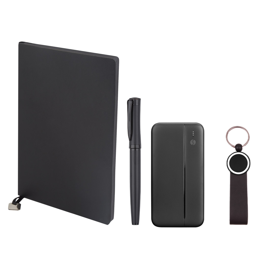 *13x 21 cm Defter *Roller Kalem *Anahtarlık *10.000 mAh Powerbank *Baskı: Lazer, Serigrafi, Sıcak Baskı